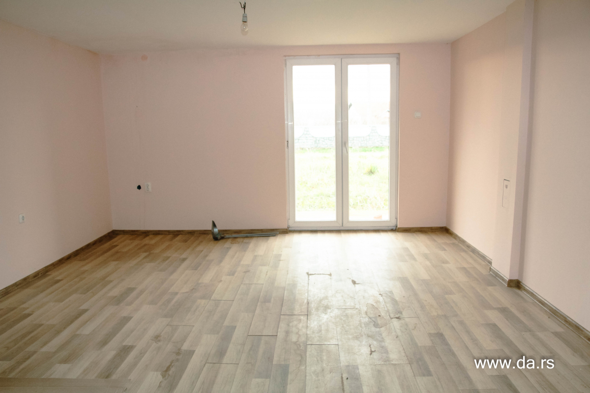 На первом этаже: коридор, большая гостиная с кухней с выходом на террасу, 1 спальня, ванная.