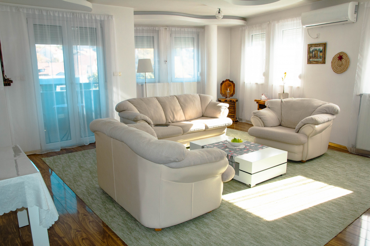 Во всех комнатах разведены радиаторы на собственный газовый котел PROTHERM, в квартире установлен программируемый термостат. За отопление платите по счетчику. В гостиной кондиционер BOSCH с функцией обогрева и охлаждения.
