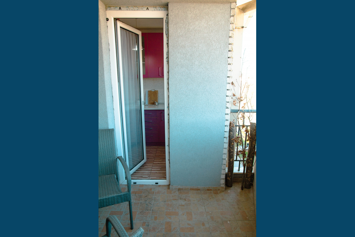 Выход на одну террасу из гостиной и кухни, выход на вторую - из спальни.